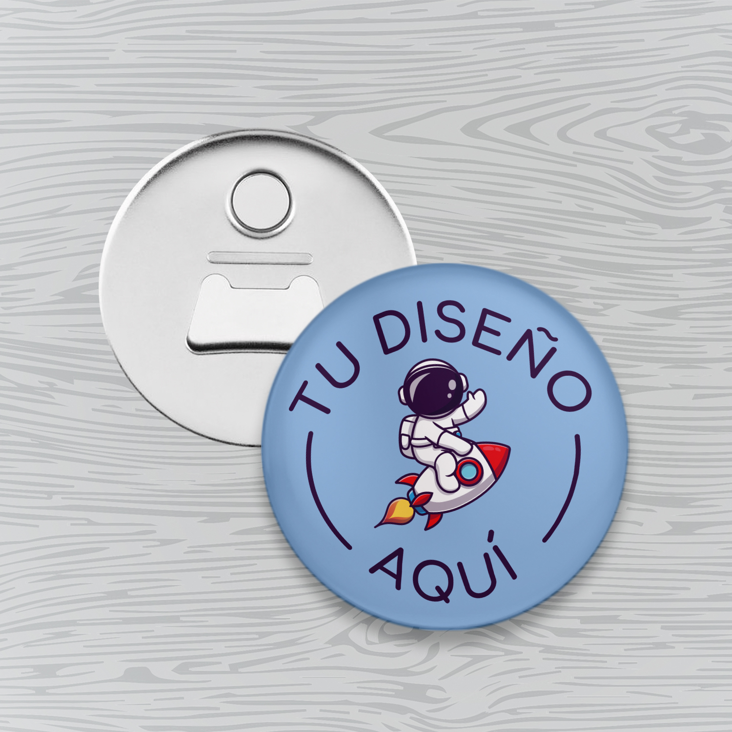 Chapa personalizada de abrebotellas ideal para el merchandising de tu marca, eventos, fotografías de familia, animales.
