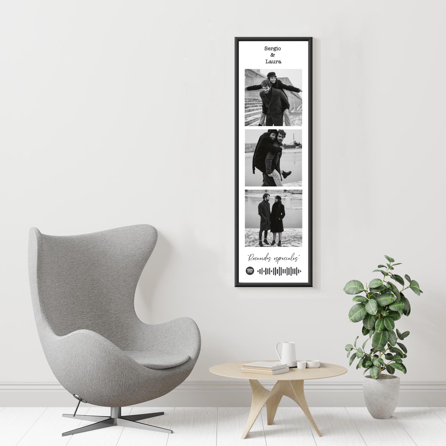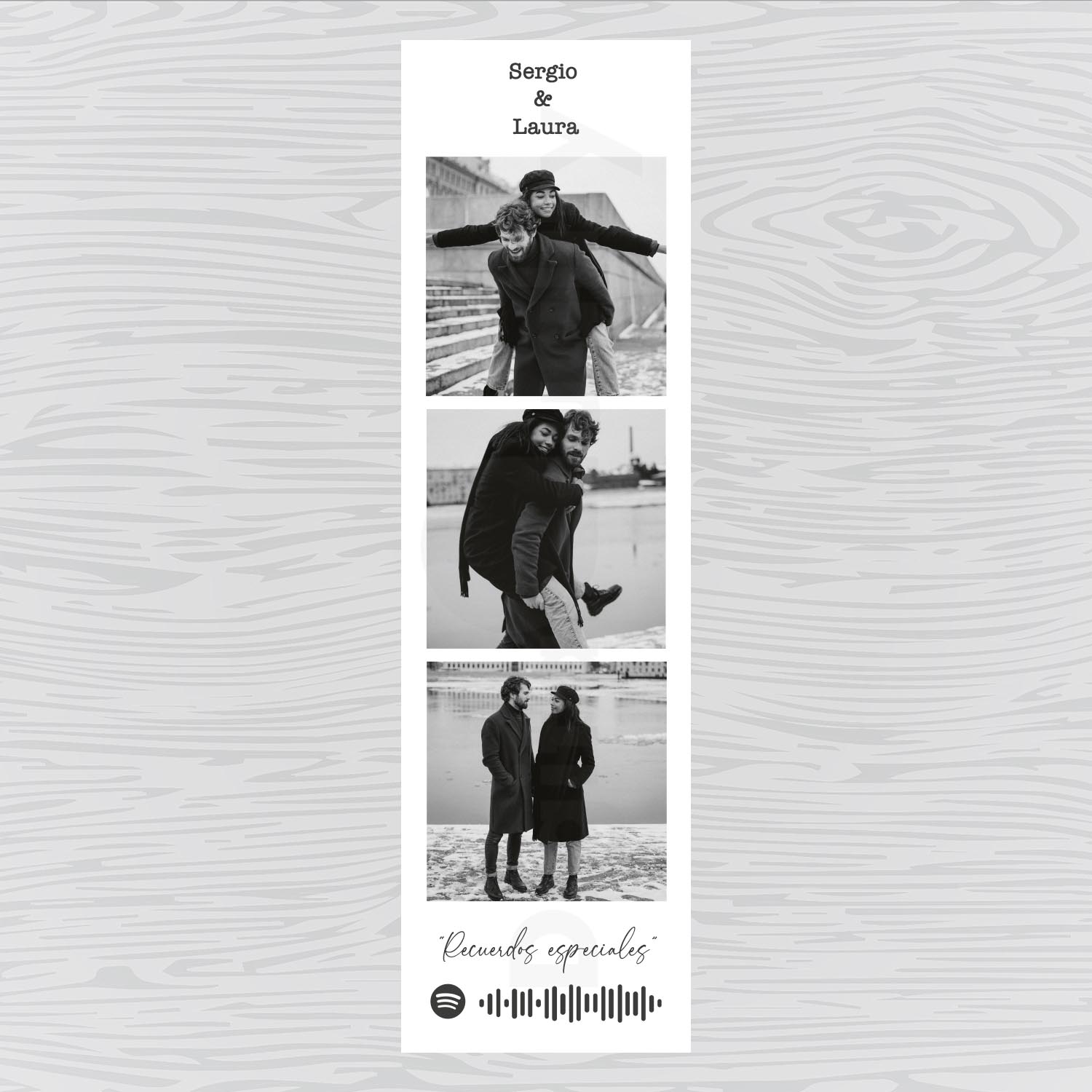 Regala a las personas que más quieras un detalle único con una canción especial. Tres fotos, nombre y el código personalizado de la canción para que se pueda escanear desde Spotify. Ideal para regalar a mejores amig@s , parejas, herman@s...