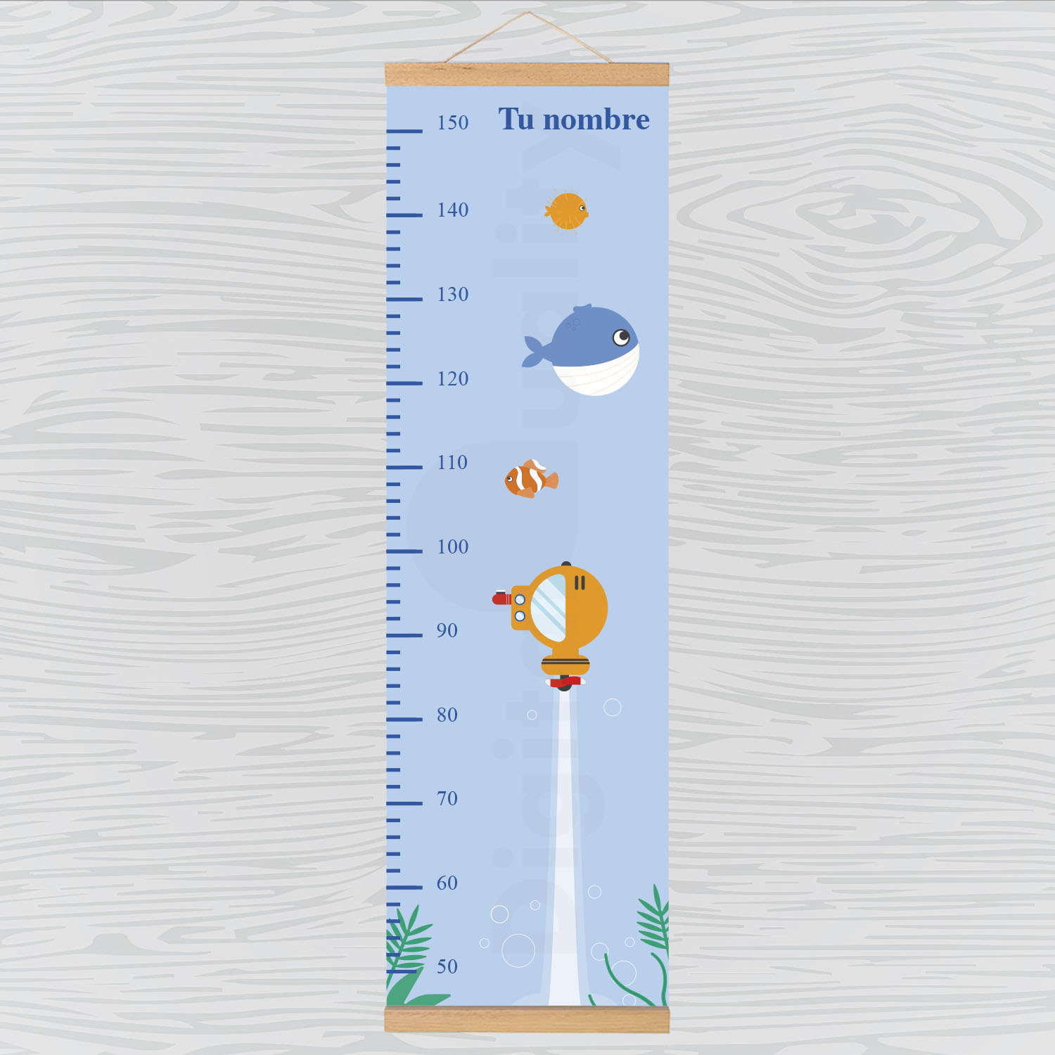¡Los peques crecen muy deprisa! Este colgador te permitirá medir hasta 1,50 m y podrás comprobar día a día como crecen. Al contrario que los medidores de vinilo, este medidor no estropea la pared, adaptado con un colgador de madera se puede colgar en la pared, el armario, puerta, etc. Impreso en lona de alta resistencia que podrás limpiar muy fácilmente con una esponja suave o un trapo.