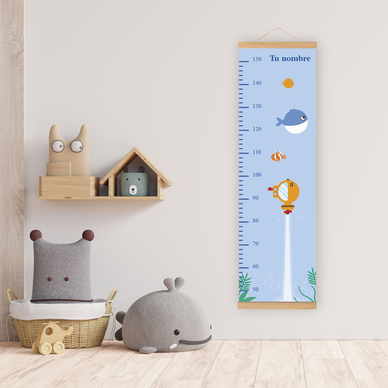Medidor infantil personalizado con su nombre, para colgar en la habitación de tu peque e ir viendo ¡cómo va creciendo de rápido!